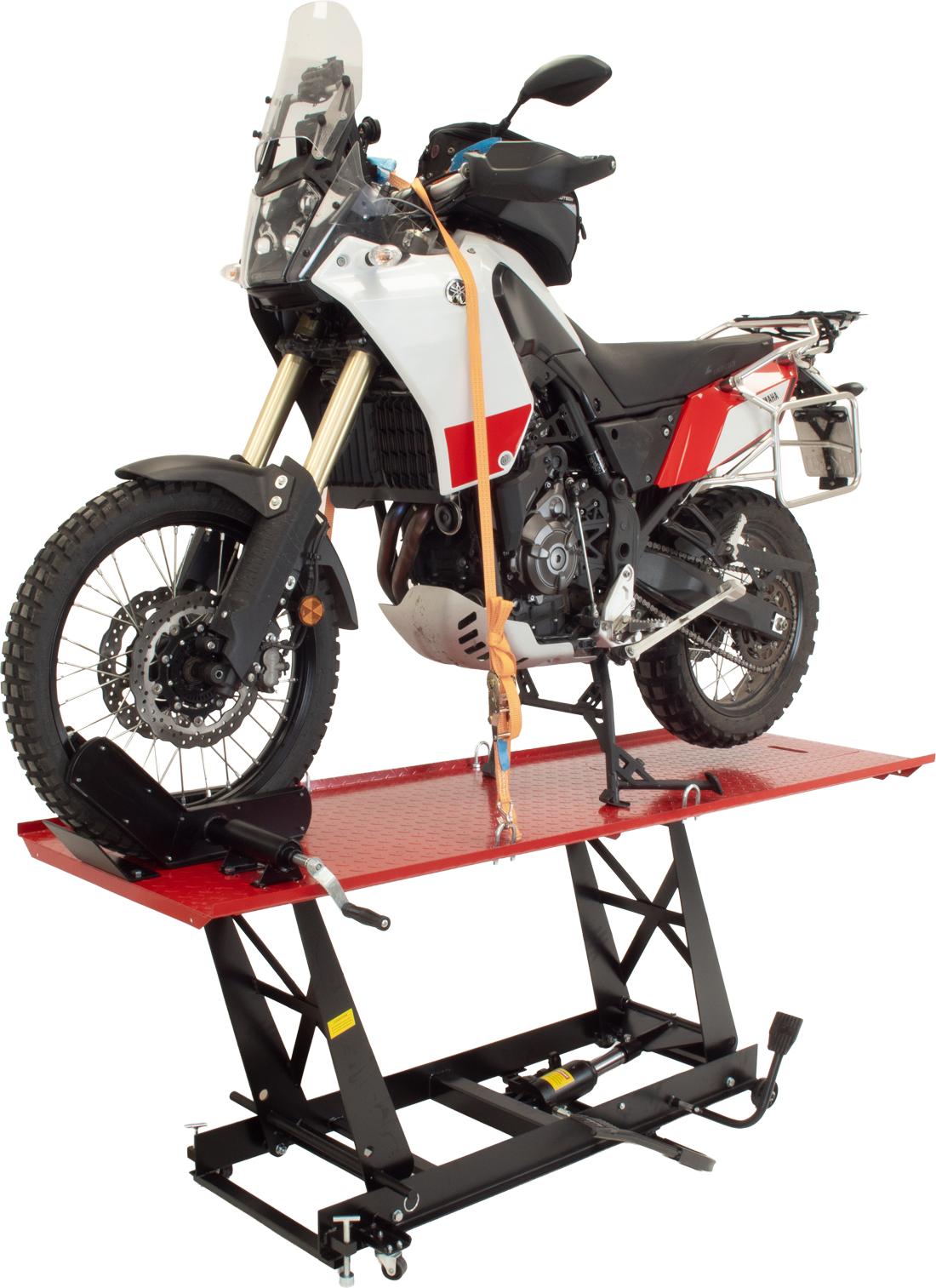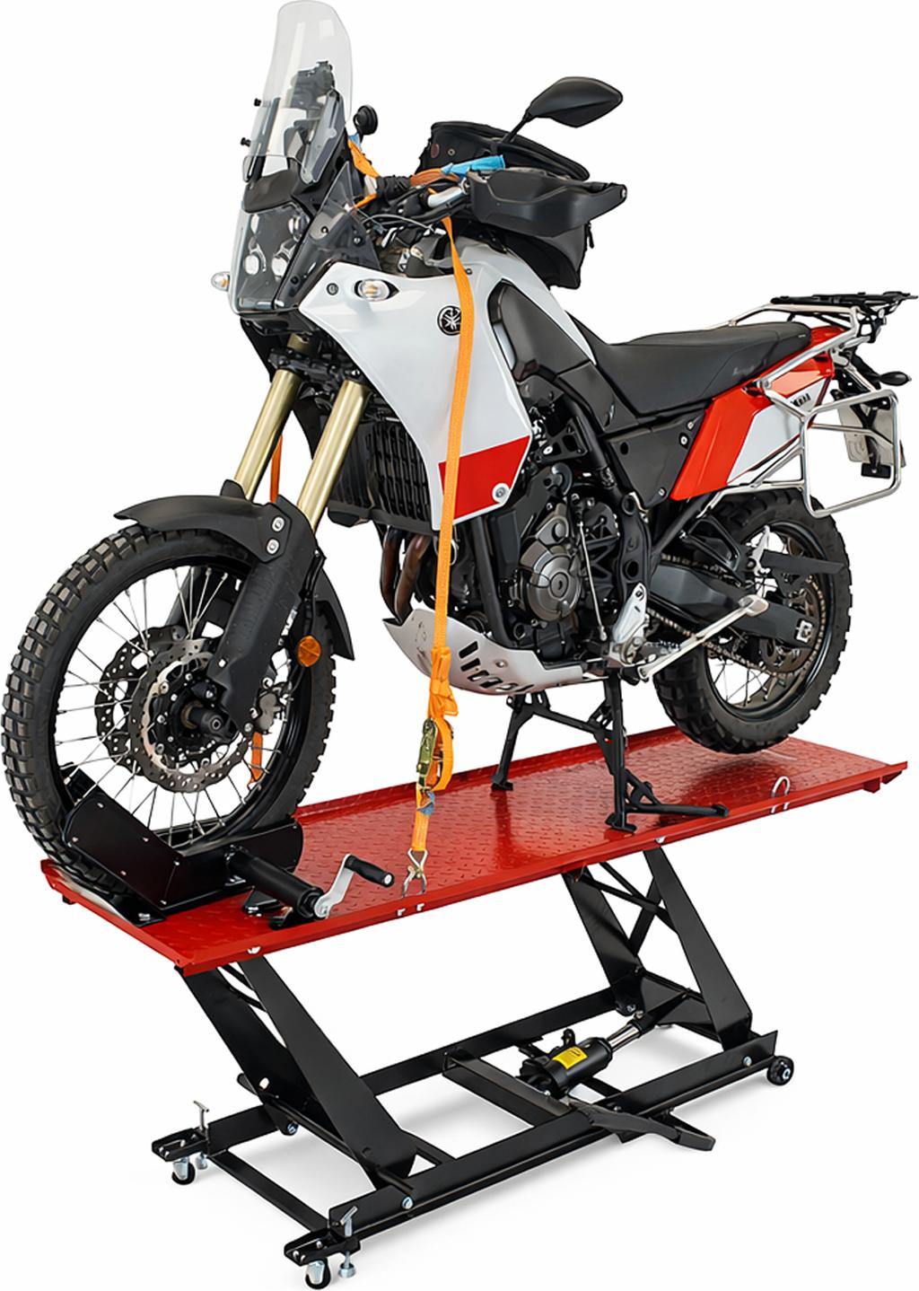 Die TRUTZHOLM Motorradhebebühne ist aus pulverbeschichtetem Stahl gefertigt und wurde speziell entwickelt, um den hohen Anforderungen von Werkstätten und leidenschaftlichen Motorradfahrern gerecht zu werden.